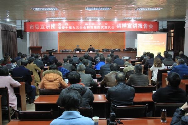 宣講會上,馬航東從中央、省委全會和市第四次黨代會召開的重大意義,黨的十八大以來中央、省委全面從嚴治黨的新舉措新經(jīng)驗新成果,《關(guān)于新形勢下黨內(nèi)政治生活的若干準則》、《中國共產(chǎn)黨黨內(nèi)監(jiān)督條例》和省委十屆九次全會《決定》的主要內(nèi)容和和精神實質(zhì),資陽全市過去五年取得的成績以及今后五年經(jīng)濟社會發(fā)展的總體目標、重點任務、主要措施等方面科學系統(tǒng)、深入淺出地作了精彩的分析講解,整場報告既有理論高度,又具有很強的針對性、實踐性和指導性,對于我們深入、完整、系統(tǒng)地領(lǐng)會黨的十八屆六中全會、省委十屆九次全會和市第四次黨代會精神具有很強的指導意義。
