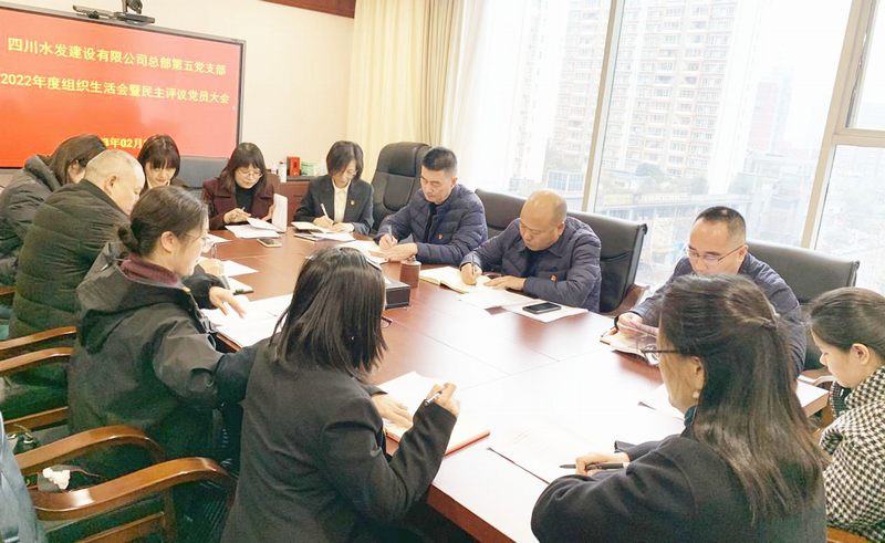 2023年2月21日,公司總部第五黨支部在成都召開2022年度組織生活會暨民主評議黨員大會,支部8名黨員(1名黨員因病請假)、支部關聯部門3名青年職工參加會議,黨委工作部副部長梁莉、紀檢監察部副部長唐琴作現場督導。公司黨委書記、董事長袁斌,董事、副總經理鄒世界以普通黨員身份參加本次組織生活會。會議由總部第五黨支部書記方兵主持會議。