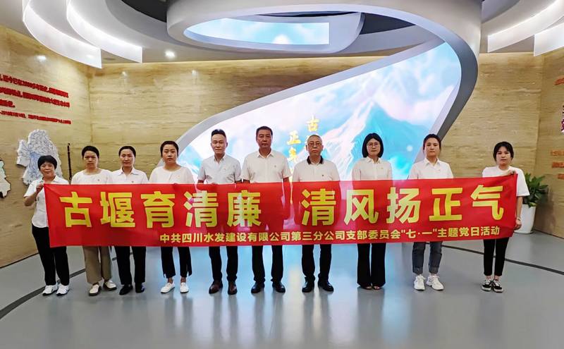 為慶祝中國共產(chǎn)黨建黨103周年,推進黨紀學習教育落地見效,強化新時代廉潔文化建設,筑牢廉潔思想防線。7月1日,三分公司黨支部組織黨員干部前往四川省都江堰水利發(fā)展中心“古堰清風”廉潔教育文化館,開展“古堰育清廉 清風揚正氣”主題黨日活動。