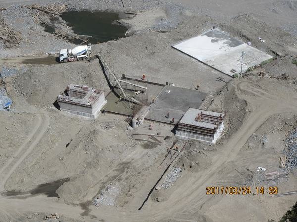 尾水橋橋臺施工尾水渠底板施工尾水渠擋墻基礎現場驗收壓力管道支鐓人工開挖三四溝電站全景