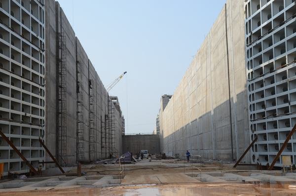 廠房前流道船閘下游公路橋蓋梁攔污柵閘墩下游魚(yú)道閘壩
