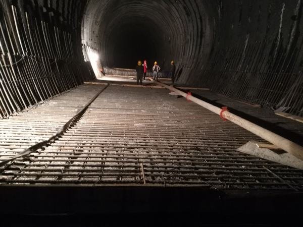新藏電站引水隧洞7#洞上游全長1060米,2017年11月29日貫通。公司通過公開招標,評選出合格的施工隊伍進行隧道混凝土襯砌施工。從2018年4月1日起,經入場安全教育和三級安全教育合格后,混凝土襯砌施工隊伍即進入正常施工階段,于4月16日順利完成第一倉混凝土澆筑施工。底板混凝土襯砌設計厚度為0.4米(Ⅳ類),此次澆筑倉號為k13+300~k13+324段,共澆筑混凝土80立方米。澆筑過程中采用分層澆筑,及時平倉,振搗到位,對于預埋件和止水部位重點監控,防止位移,充分確保澆筑質量。
