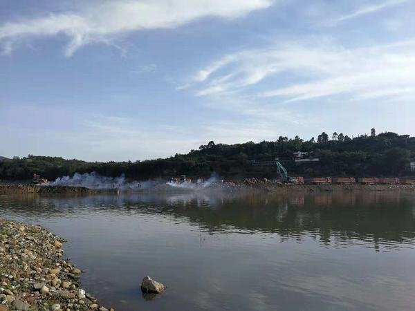 金堂縣沱江盤龍寺攔河閘工程二期上游圍堰順利合攏