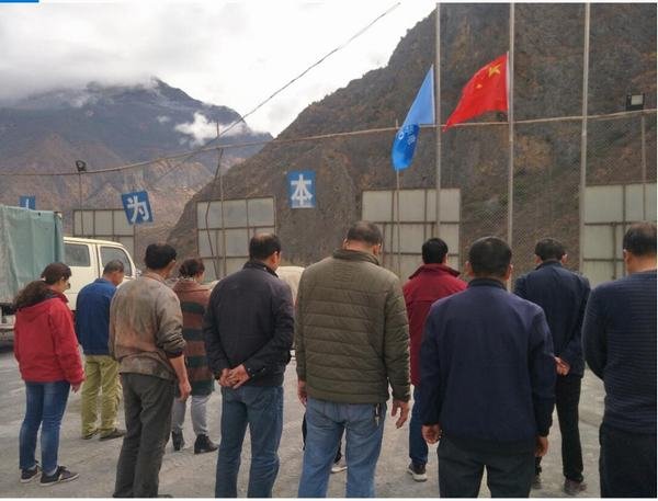 4月4日10時,水洛河新藏電站工程項目經理部全體員工自發在營地國旗下集合,降半旗舉行默哀儀式,沉痛默哀三分鐘,向在“3.30四川木里森林火災”犧牲的英雄們致敬,愿他們一路走好!