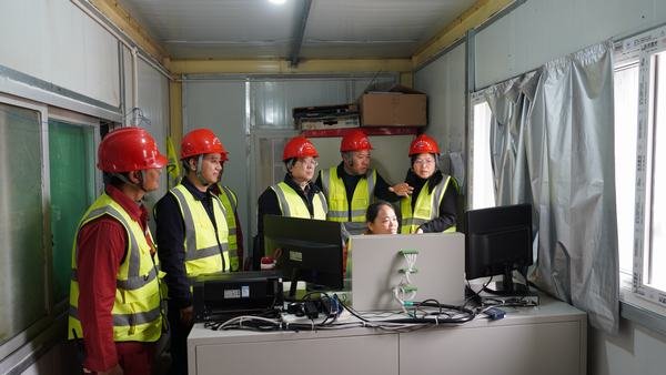 慰問困難職工后,鐘杰董事長一行又驅車深入岷江虎渡溪航電樞紐工程項目慰問一線干部職工并檢查指導工作,向春節期間堅守崗位的干部職工表示新春慰問和祝福,并送上慰問品。之后,在公司黨委書記、董事長代勇,總經理袁斌,副總經理茍仕聰、鄒世界及省水利設計院公司三分院副院長單智杰、項目設總鐘鴻等陪同下,察看了營地建設,接受安全告知后,深入到廠房前池、一期閘壩工程、拌和站等現場檢查指導工作,詳細察看和了解安全生產、進度質量、文明施工、環保水保等相關工作情況,對拌和系統布置、自動化程度、管理制度給予了肯定和贊揚,并對提前做好安全度汛等工作做出要求。