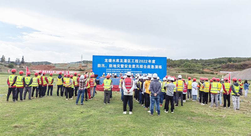 演練即檢驗,演練即實戰。5月26日下午,鹽源縣龍塘水庫及灌區工程開展2022年度防汛防地災暨安全度汛綜合應急演練。項目法人、監理、EPC總承包單位共100余人、30余臺設備參加了此次演練。涼山州防汛抗旱指揮部、鹽源縣委、鹽源縣水利局、鹽源縣應急管理局、鹽源縣自然資源局相關領導對演練進行了觀摩指導。龍塘水庫下游的龍塘鎮、梅雨鎮、潤鹽鎮及村、組代表出席演練活動。