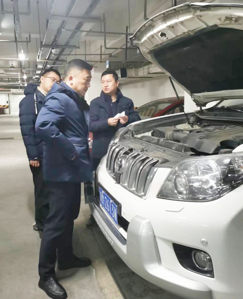 會(huì)后,倪川、董源及公司駕駛員一行到停車場逐一現(xiàn)場檢查車輛安全。