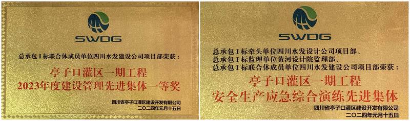 1月15日,公司亭子口項(xiàng)目部榮獲亭子口灌區(qū)建設(shè)開(kāi)發(fā)有限公司頒發(fā)的2023年度建設(shè)管理先進(jìn)集體一等獎(jiǎng)、安全生產(chǎn)應(yīng)急綜合演練先進(jìn)集體。