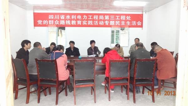 2013年11月10日下午,第三工程處在宜賓市筠連縣后溝水庫項目部召開了黨的群眾路線教育實踐活動專題民主生活會。局黨委副書記、紀委書記高本祥,勞動人事處處長舒建國,黨辦主任夏永紅到會指導(dǎo)。三處班子成員參加會議,后溝水庫項目部黨員職工及各科室主要負責人列席會議。會議由三處黨支部副書記周加利主持。