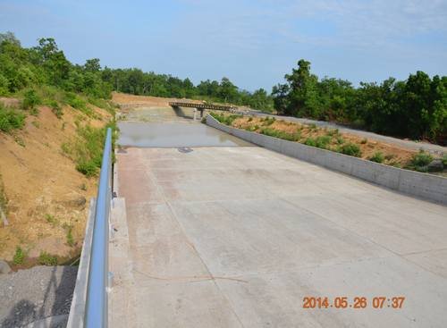 二枯期(2012.10~2013.6)是老撾色薩拉龍灌溉工程高峰期,是按期履約合同的關鍵節點。主要完成大壩左右岸壩段填筑到達到203米高程,超總計劃多填筑3米高程;溢洪道全部完工,達到完工驗收條件;取水口施工達到203米高程;引水渠主渠砼襯砌8182米,超額完成3682米,渡槽完成1號、2號、3號全部的砼澆筑,4號渡槽完成8個基礎及排架的砼澆筑。提前一個月達到二枯節點面貌,為順利完成老撾色薩拉龍灌溉工程施工任務打下了堅實的基礎。