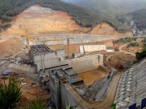 廠房基坑溢流壩段下游立視右岸俯視右岸俯視左岸上游側(cè)視左岸下游俯視