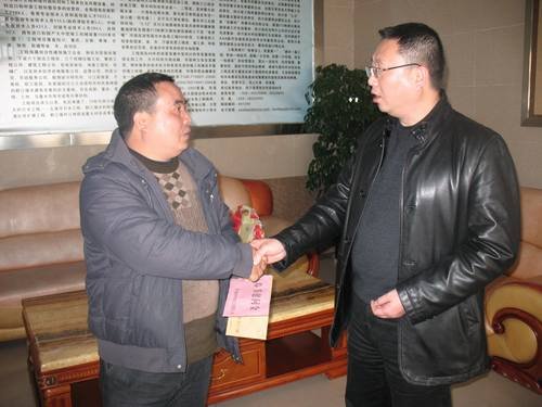 代勇對省級勞模、局都江堰辦事處主任鄔清貴進行了慰問,感謝勞模們?yōu)閱挝坏陌l(fā)展、職工的成長付出的心血和汗水,并致崇高的敬意!隨后,在鄔清貴及都江堰辦事處黨支部書記、工會主席孫代華等陪同下,代勇一行慰問了精神病患者、在2008年地震中失去妻子的困難職工盧朝東,身患眼疾的困難職工龍達治,為他們送上慰問金和慰問品,并與他們親切交談,詢問目前的工作生活情況,送去了局黨委、行政、工會的關(guān)心問候及新春祝福。同時,把鄔清富局長、局紀委書記王裕明給結(jié)對幫扶職工的慰問金分別送到了因燒傷致殘的馬理及盧朝東手中,對組織的關(guān)懷和領(lǐng)導的關(guān)愛,他們表示誠摯的感謝。