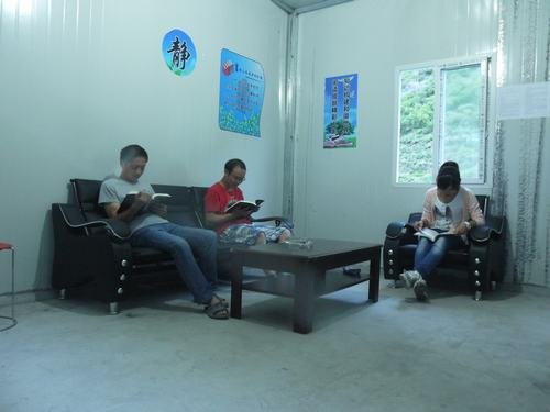 2015年8月12日下班后,局鑫宏公司固滴電站項(xiàng)目部3名員工津津有味的在工地閱覽室看書、工地籃球場(chǎng)上8名員工正在火熱上演一場(chǎng)籃球賽……