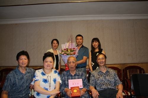 慰問組一行在與吳老的親切交談中,關切詢問了吳老的生活起居、身體健康等情況,共同回憶了革命戰爭時期的崢嶸歲月,共話革命精神的傳承,共同謳歌新中國建設的偉大成就,并為吳老送上鮮花、光榮榜、抗戰勝利70周年紀念章和5000元慰問金。