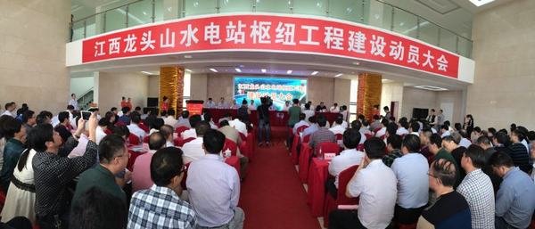 2015年10月11日上午,江西龍頭山航電樞紐投資開發(fā)有限公司駐地艷陽高照,彩旗飄飄,喜氣洋洋。10時(shí)18分,龍頭山水電站樞紐工程建設(shè)動員大會在這里如期舉行。江西省委常委、常務(wù)副省長毛偉明出席大會并作動員講話。江西省政府有關(guān)部門負(fù)責(zé)人,宜春市、樟樹市、豐城市兩級黨委、政府及有關(guān)部門和鎮(zhèn)鄉(xiāng)負(fù)責(zé)人,有關(guān)銀行和金融機(jī)構(gòu)負(fù)責(zé)人,業(yè)主、設(shè)計(jì)、監(jiān)理、施工等方面代表約150人出席大會。宜春市政府市長蔣斌主持大會。