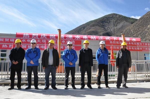范正榮總經(jīng)理(中)和鄉(xiāng)城縣政府領(lǐng)導(dǎo)出席下閘蓄水儀式