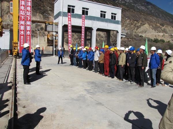 上午9時,鄉(xiāng)城縣政府有關(guān)領(lǐng)導(dǎo)和大唐鄉(xiāng)城唐電水電開發(fā)有限公司范正榮總經(jīng)理,水利部丹江口水利樞紐管理局建設(shè)監(jiān)理中心、水利部四川省水利水電勘測設(shè)計研究院與各參建單位主要負責(zé)人準時到達現(xiàn)場,共同參加此次蓄水儀式。9點56分,范正榮總經(jīng)理一聲令下,局機械廠施工人員立即按下操作按鈕。啟閉機緩緩驅(qū)動,閘門緩慢下降,碩曲河水被逐漸阻斷。隨著最后一道閘門的徐徐落下,嚴密封閉,碩曲河水被完全阻斷,大唐鄉(xiāng)城唐電水電開發(fā)有限公司在碩曲河流域建成的第二座高水頭引水式電站——洞松(碩淉)水電站順利完成下閘蓄水的建設(shè)目標。該目標的完成,是洞松(碩淉)水電站重要的里程碑,標志著洞松(碩淉)水電站大壩主體工程已經(jīng)全部完成,正式進入蓄水階段,首臺機組投產(chǎn)發(fā)電進入倒計時。