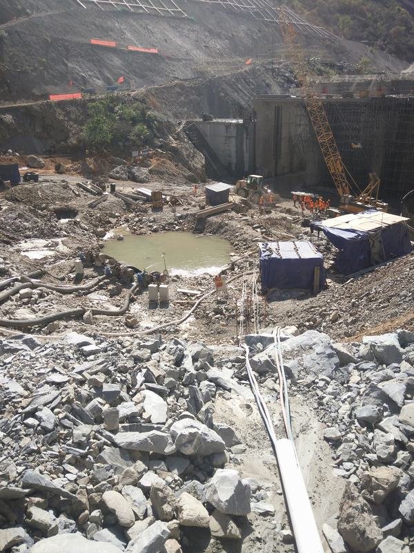 上游圍堰扎沙袋