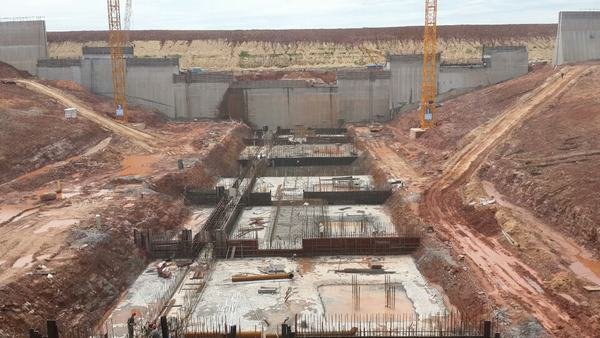 截止6月底:廠房全年縱向混凝土圍堰已全部完成澆筑,正在填筑廠房全年橫向圍堰,完成廠房6臺機組底板澆筑,廠房右邊墻澆筑最大高度達20m。本月完成混凝土澆筑2.47萬方。