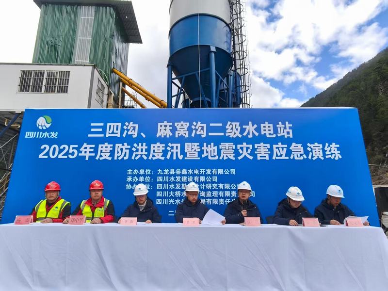 2025年4月26日,九龍縣三四溝、麻窩溝二級水電站項(xiàng)目部在發(fā)電廠房區(qū)域開展2025年度防洪度汛暨地震災(zāi)害應(yīng)急演練。
