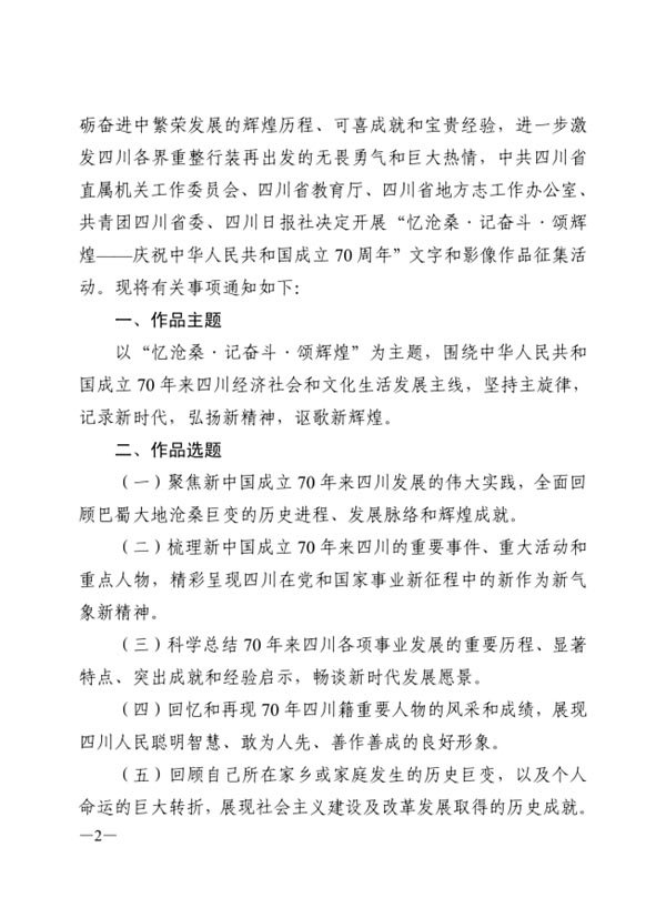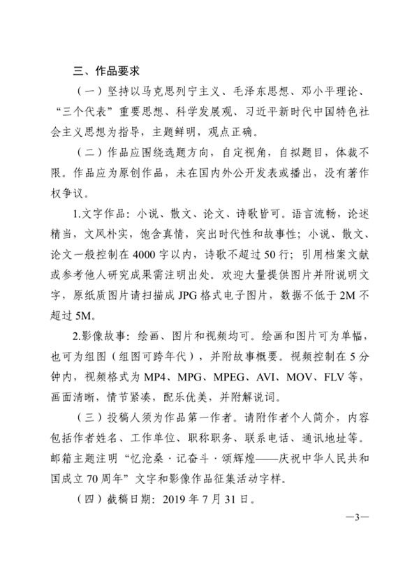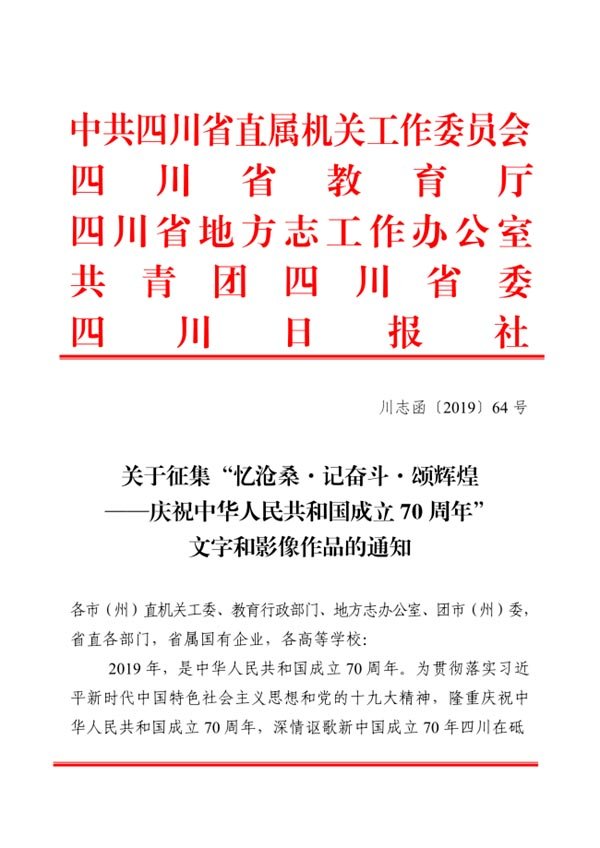 關(guān)于征集“憶滄桑 記奮斗 頌輝煌——慶祝中華人民共和國成立70周年”文字和影響作品的通知